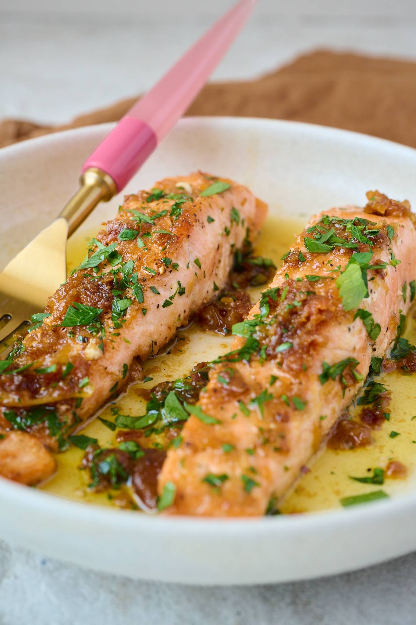 Hi lovely friends, This Honey Garlic Butter Salmon is one of those dinners that feels a little bit special but is secretly so easy to make. It starts the way many of my favourite recipes do… with butter, garlic confit and olive oil gently sizzling in a pan. Once the garlic turns fragrant, a little honey goes in and creates the most beautiful glossy sauce that coats the salmon as it cooks. It’s the type of dinner I make when I want something nourishing and comforting but don’t have the energy...